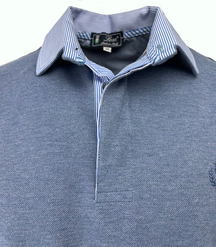 Maglia Polo Piquet Avio Collo Camicia Rigatino Azzurro