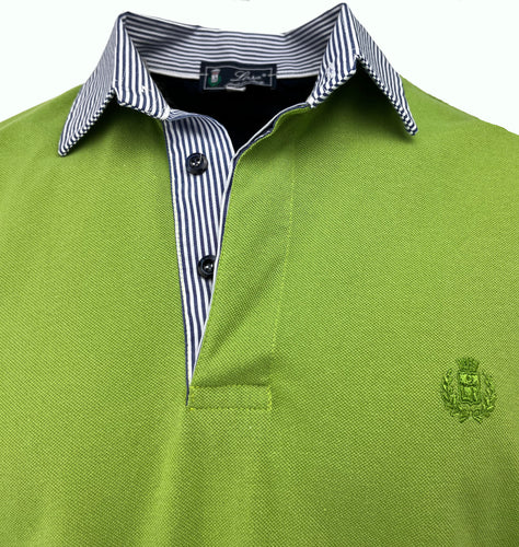 POLO Uomo Piquet Blu Verde Brillante Collo a Righe Bianco Blu